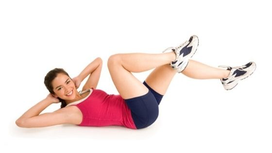 >>Coloque as mãos na cabeça e vá intercalando as pernas, como se você estivesse pedalando no ar, formando um ângulo de 90 graus.